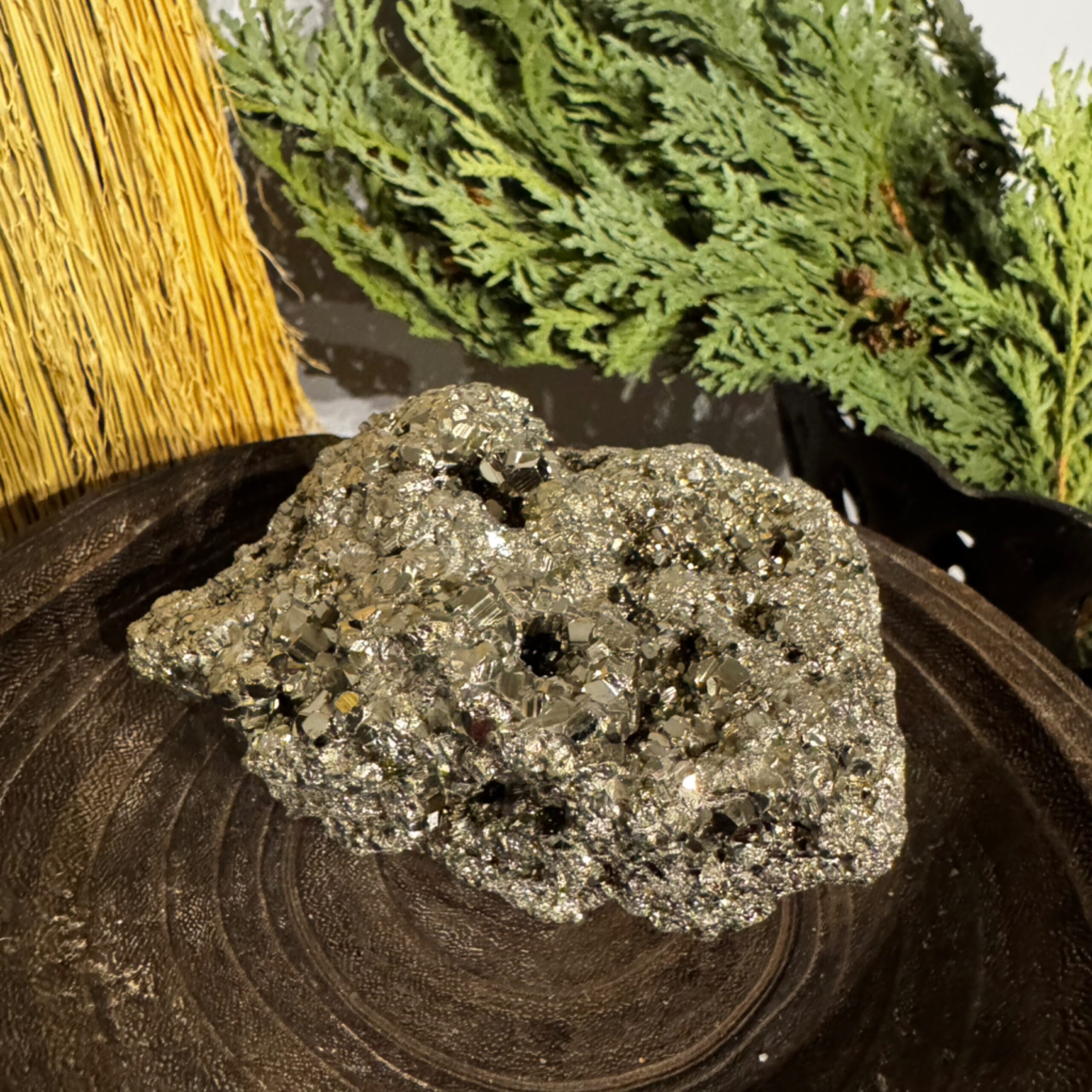This Pyrite Cluster showcases natural beauty with its striking metallic luster and intricate formations. Known for its unique appeal, it’s a perfect addition to any collection or space seeking positive energy. Great for attracting abundance.