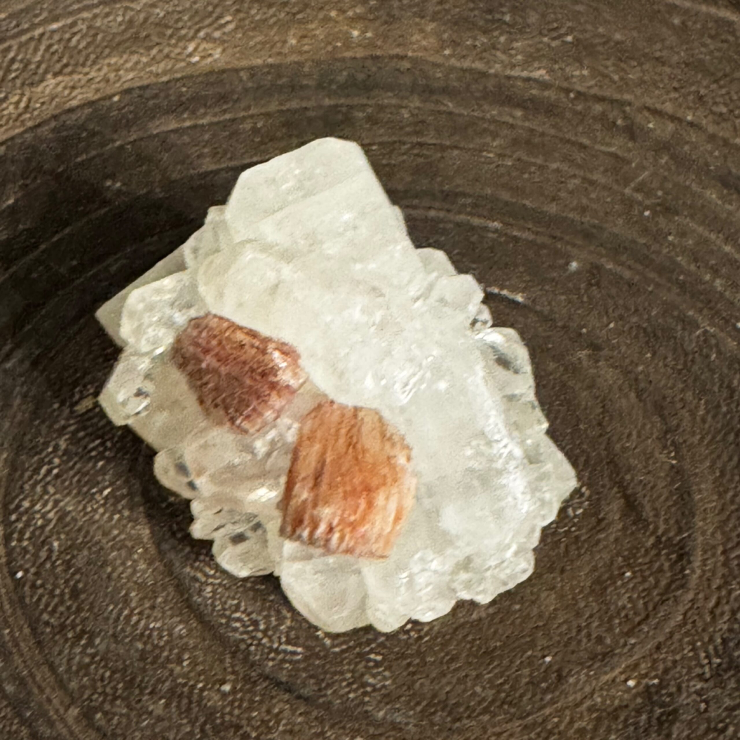 Stilbite and peach calcite specimen